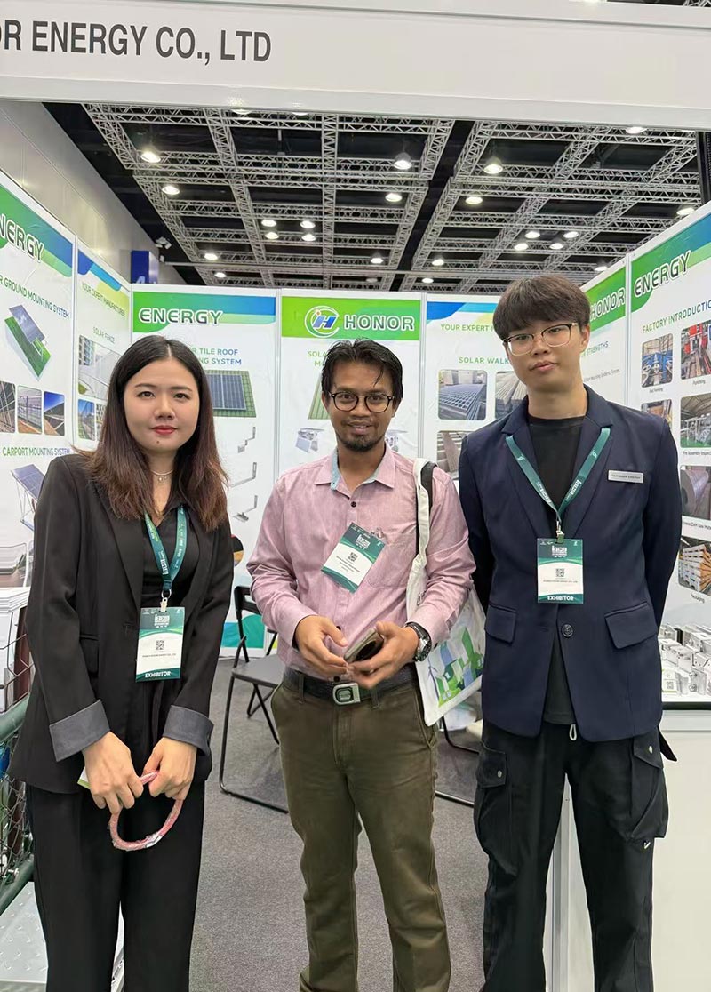 Näyttelykerros? Se oli täynnä energiaa alusta loppuun. Voisit heti kertoa, että aurinkosähköenergia kasvaa edelleen kaikkialla maailmassa ja Kaakkois-Aasian markkinoilla? Siitä on tulossa suuri keskus, jossa on niin paljon potentiaalia. Kaikessa tuossa hälinässä Honor Energyn tiimi pysyi keskittyneenä – he toivat niin paljon innostusta ja ammattitaitoa osastolleen joka ikinen päivä. Heillä oli yhteensopivat univormut, he olivat täynnä energiaa ja sukelsivat suoraan todellisiin, merkityksellisiin keskusteluihin vierailijoiden, ostajien ja alan kumppaneiden kanssa kaikkialta. Mikään keskustelu ei ollut läheskään samanlaista, mikä oli siistiä.