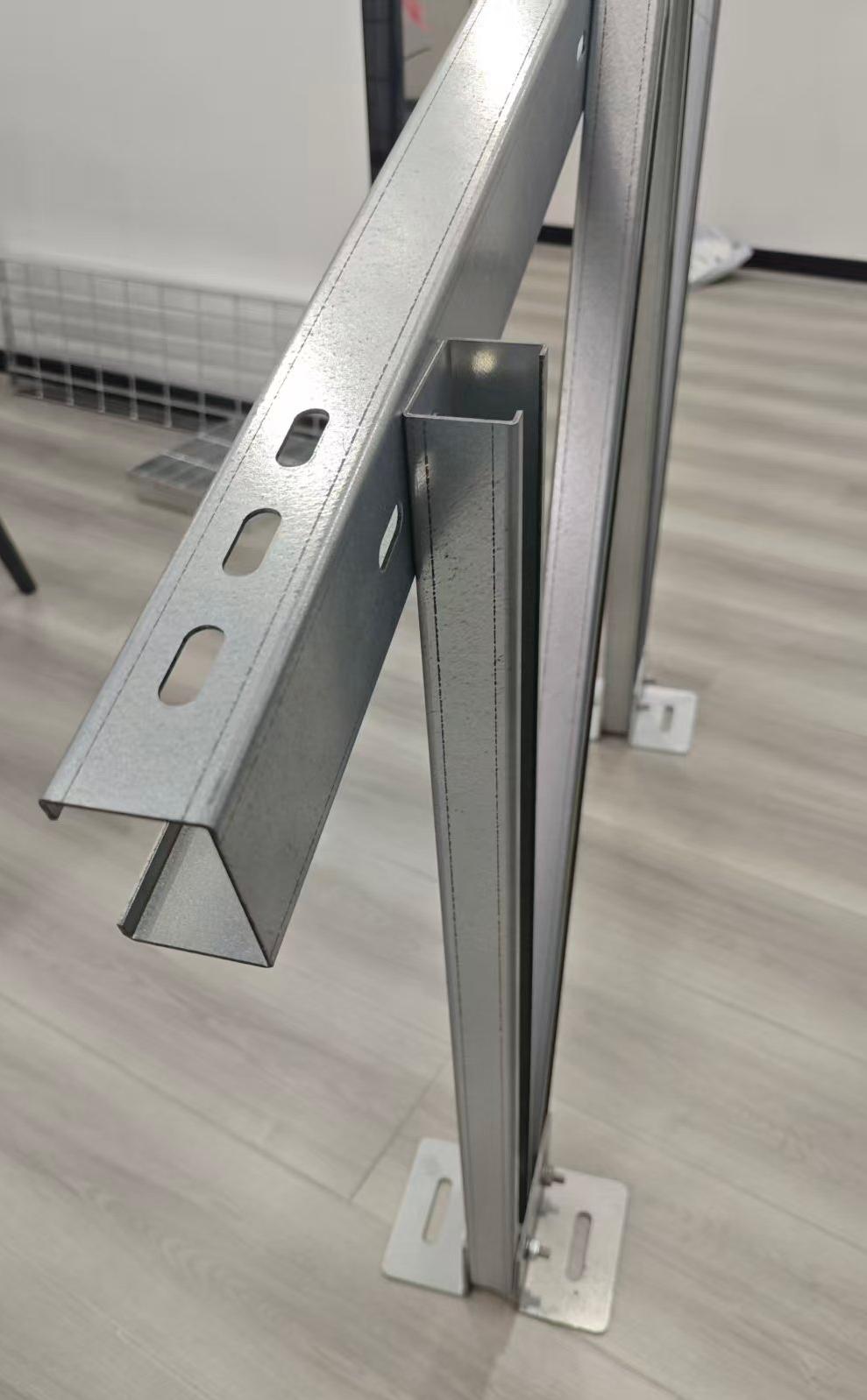 Teräksiset aurinkopaneelit C-tyypin kiskot on valmistettu erittäin lujasta hiiliteräksestä ja niille on tehty kuumasinkitys. Ne ovat tarpeeksi lujia kantamaan raskaita kuormia, kestävät säätä ja tarjoavat vankkaa arvoa. Sen C-muotoinen kokoonpano toimii tyypillisesti pylväsnä ja kiskona tukijärjestelmässä. Pintareikäkuvionsa ansiosta se mahdollistaa yhteenliittämisen ja muodostaa siten tukijärjestelmän ytimen. Ne ovat yksinkertaisia asentaa, pysyvät vakaina ja kestävät, joten aurinkojärjestelmä toimii sujuvasti pitkän matkan ajan.